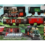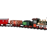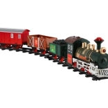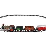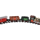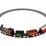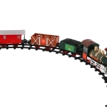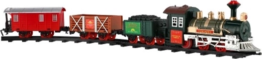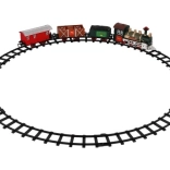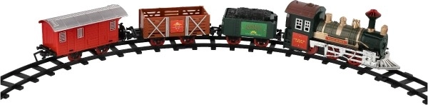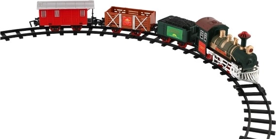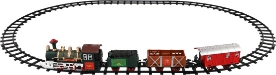 The package includes 8 pieces of track, allowing you to create a circuit of 107 cm. The track consists of 6 curves and 2 straight tracks. You need 2 x AA batteries for the locomotive (not included).