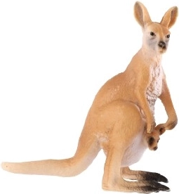 The figurine captures typical features—brown fur, a long tail, and a joey in the pouch—for realistic and educational play.