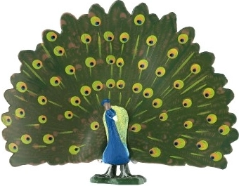 This realistic plastic figurine depicts a majestic Indian peafowl with enhanced colors and the characteristic crown on its head. Thanks to the refined details, you’ll appreciate the typical “peacock eyes” on the coverts and the contrast of the blue body with green feathers.