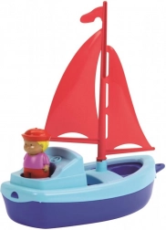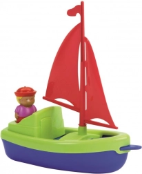 This colorful sailboat with a sailor is an ideal toy for little seafarers. It floats on water, has a stable hull, and bold sails that catch the eye at first glance. Easy to hold and suitable for everyday play in the bath and pool.