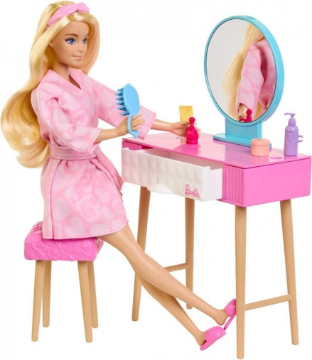 Barbie can brush her hair, get ready, and prepare for the day. Includes a comb, bottles, and a drawer for neat storage of small items.