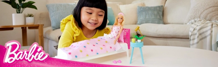 The set is perfect for developing kids’ imagination and fine motor skills. Children can get Barbie ready for a new day or let her relax with a hot drink and a cuddly kitten.
