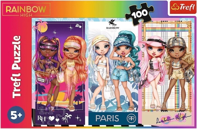 This colorful puzzle with the beloved RAINBOW HIGH dolls will delight kids and collectors alike. With 100 precisely cut pieces, it offers a pleasant challenge and a beautiful result measuring 410 × 275 mm that you can display.