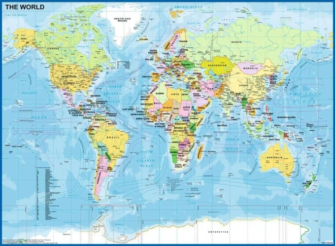- Educational theme of the world map supports knowledge of continents, oceans, and countries.