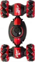 Fun and durable RC car with dual control for action driving and tricks. Thanks to omnidirectional wheels, 360° spins, and two driving modes (race/off-road), it handles fast sprints and challenging terrain. The package includes two controllers: a classic joystick and Gravity Sensor gesture control operating at 2.4 GHz.