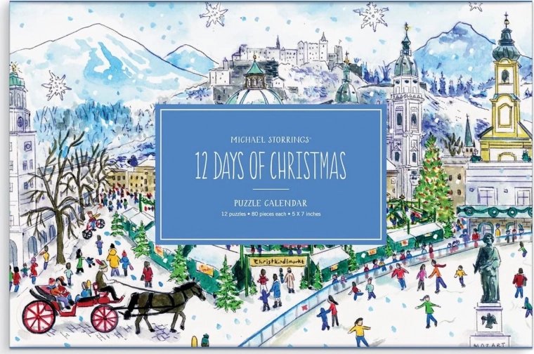 This original advent calendar combines festive décor with relaxing fun for young and old alike. Slide off the outer sleeve to reveal the inner board with 12 windows, behind which you’ll find illustrated puzzles. Each scene captures the spirit of Christmas around the world in Michael Storrings’s signature style.