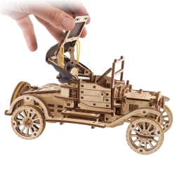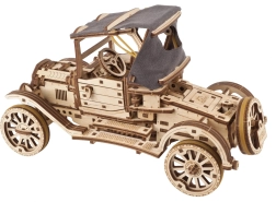 Enter the world of historical vehicles with this wooden model inspired by the iconic Ford Model T. The model offers opening doors, a folding canvas roof, and the capability for independent driving, including reverse.