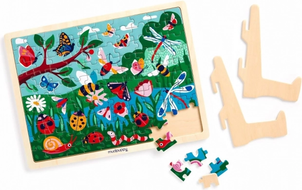This high-quality wooden puzzle with motifs of flowers, trees, and garden animals will delight children and parents alike. Colorful illustrations by artist Nadia Taylor spark curiosity and natural learning about nature. Thanks to the wooden material, the puzzle is durable, pleasant to the touch, and great for repeated assembly.