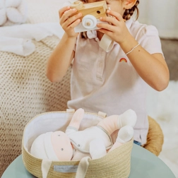 The Pol doll is designed for gentle cuddling and early practice of caregiving skills. Thanks to its soft textile body, embroidered little face, and safe construction, it is suitable from birth. The included portable bag with sturdy handles makes carrying easy both at home and outside.