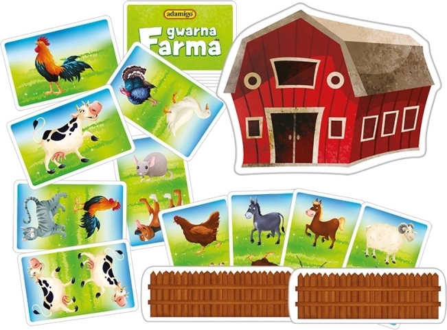 Discover the fast and cheerful card game Gwarna Farma by ADAMIGO that entertains the whole family. Players try to be the first to find three identical animal cards, add them to their farm, and imitate animal sounds. The game develops quick reactions, fine motor skills, and auditory perception, and is great for children aged 3 and up.