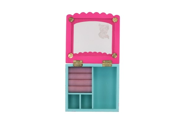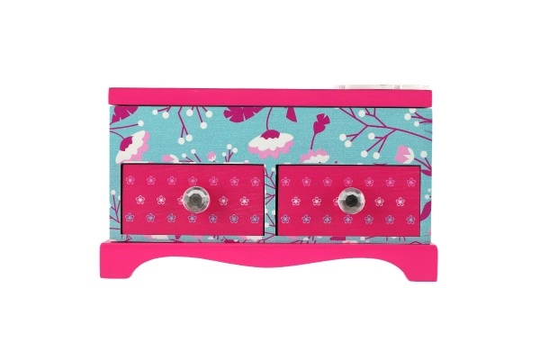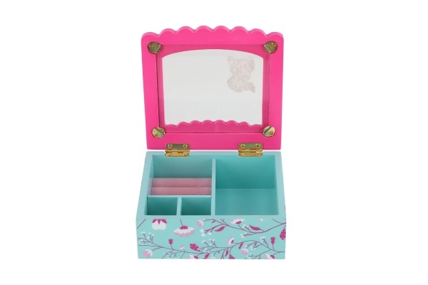 Un agencement bien pensé facilite l’ordre au quotidien : compartiments et petits tiroirs pour les bracelets, rouleaux pour bagues, crochets pour colliers et un doux rembourrage qui protège les surfaces délicates. Grâce au miroir, les enfants essayent facilement leurs accessoires, tandis qu’une fermeture sûre et un verrouillage à clé en option (boîte verrouillable, boîte à bijoux pour enfants avec serrure) gardent les trésors en sécurité. Une construction robuste en bois ou en carton rigide évite les rayures et l’emmêlement des chaînes, pour que tout reste bien ordonné à sa place.