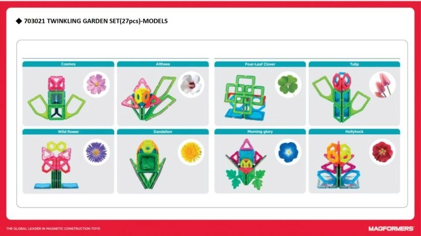 Légères et résistantes, les pièces dotées d’aimants de qualité s’assemblent intuitivement, rendant la construction simple et fluide. Tous les sets et éléments Magformers sont entièrement compatibles, ce qui permet d’agrandir la collection et de créer des modèles toujours plus grands à partir de carrés, triangles, rectangles et autres formes. La construction magnétique Magformers soutient l’apprentissage STEM et développe la logique, l’imagination et la patience.