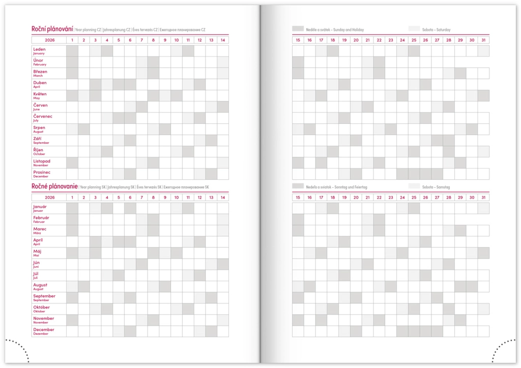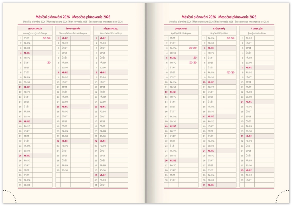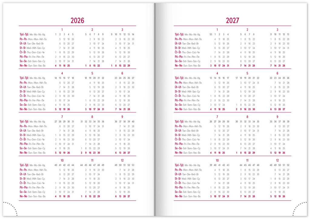 Agenda hebdomadaire Tomy 2026 bleu-rouge 15 x 21 cm