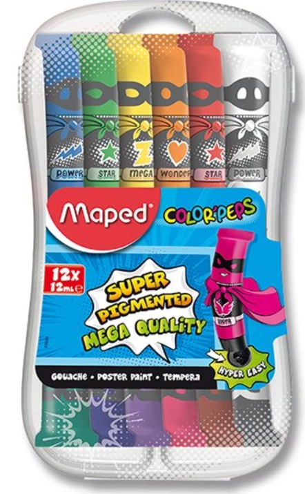 Gouaches en tubes 12×12 ml dans une boîte en plastique MAPED