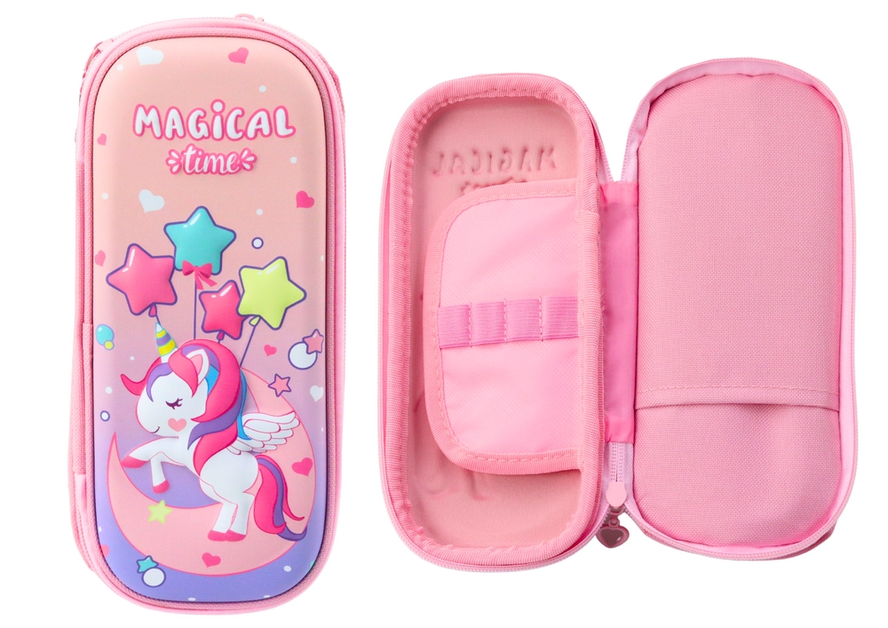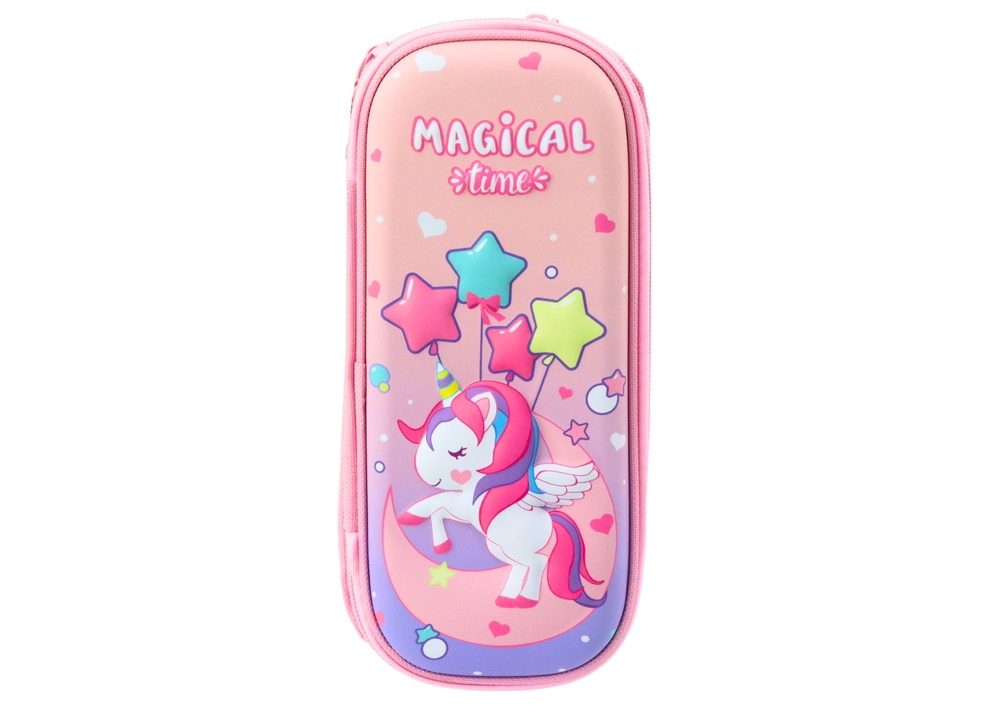Trousse rose avec licorne 3D, deux compartiments 24 × 11 × 7 cm