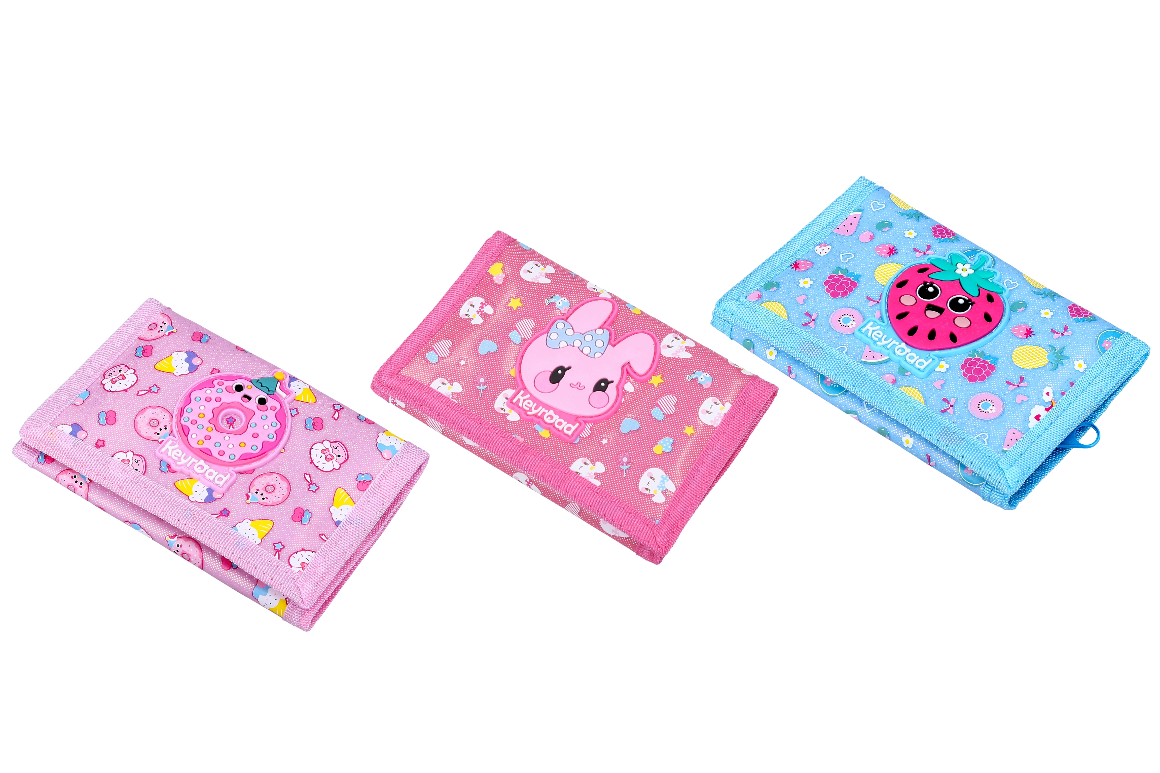 Portefeuille en tissu pour fille Keyroad avec fermeture velcro, 3 motifs