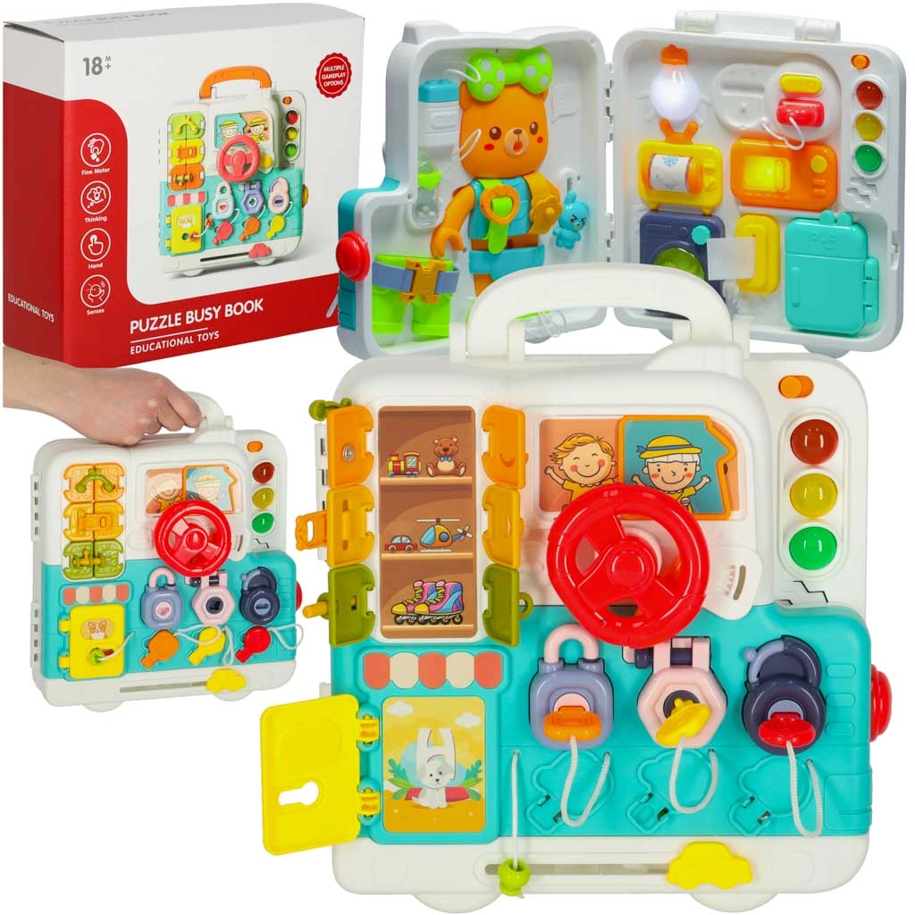 Chaque planche motrice renferme des éléments astucieux : fermetures éclair, boucles, lacets, verrous, engrenages, glissières, labyrinthes, interrupteurs, velcro, boulier ou formes. Les enfants s’exercent à des compétences pratiques (fermer une fermeture éclair, lacer des chaussures), développent la perception sensorielle et la résolution de problèmes. Des surfaces lisses, des peintures à base d’eau et une fabrication robuste garantissent un jeu confortable et sécurisé.
