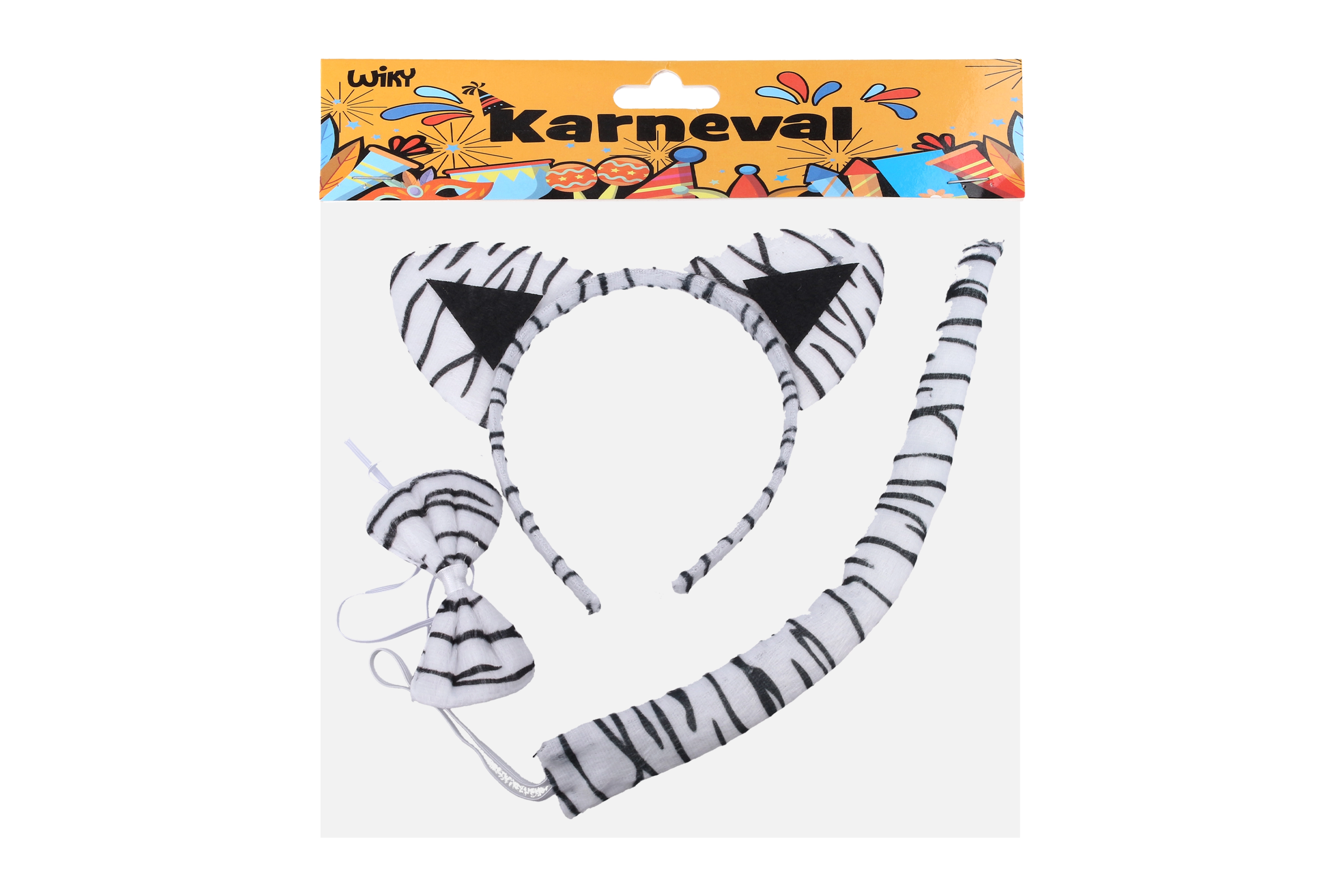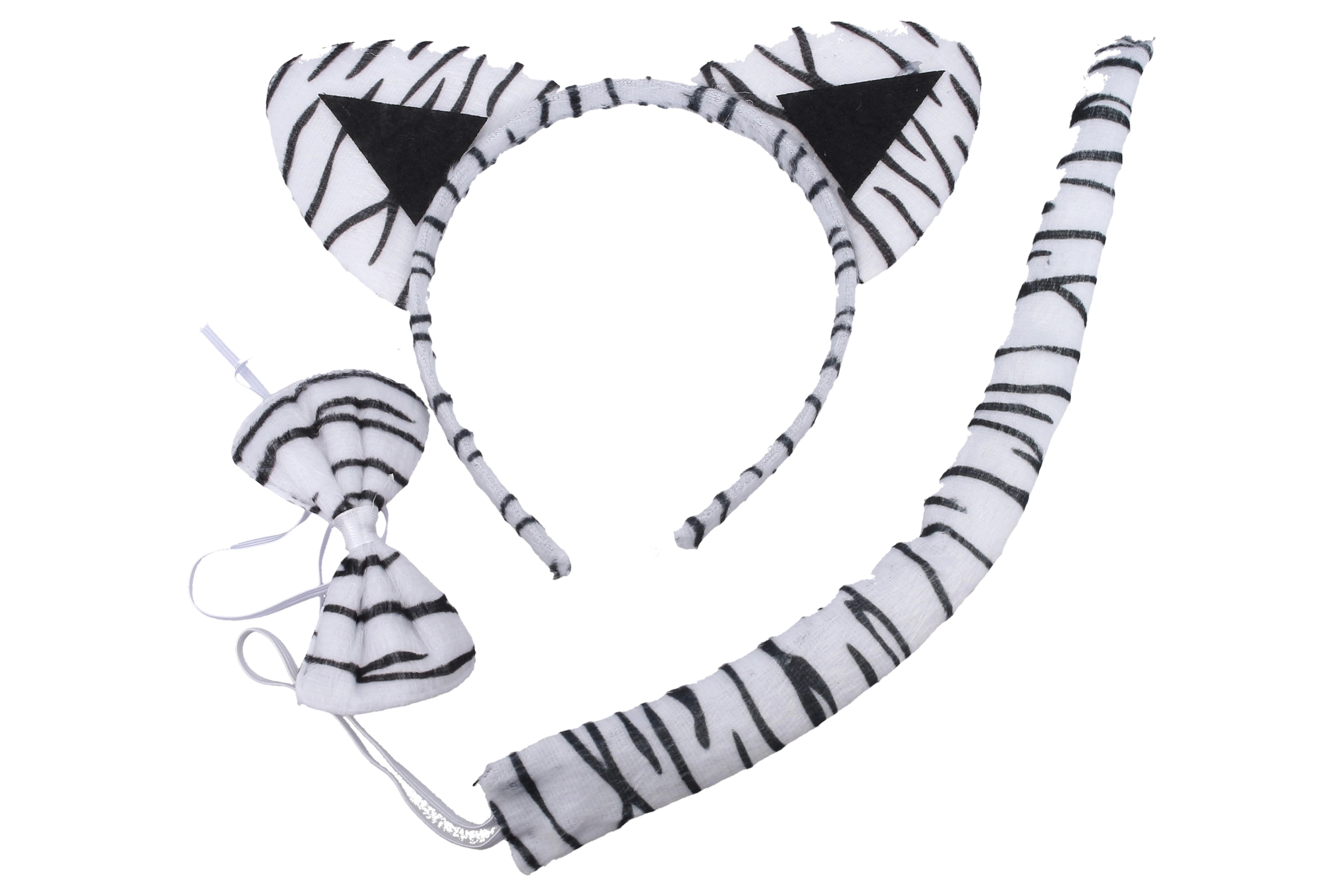 Set de carnaval – tigre blanc (serre-tête, queue et nœud papillon)