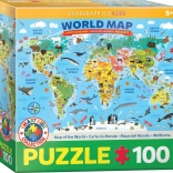 Profitez du divertissement et de l’apprentissage avec le puzzle Carte du monde illustrée, idéal pour les enfants dès 5 ans. Enrichissez leurs connaissances en géographie grâce à cette magnifique carte éducative, présentée dans une boîte carrée pratique.