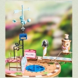 Le kit est livré en pièces détachées et comprend des pièces de construction, de la colle, des peintures, un pinceau et d'autres outils. La construction inclut la peinture et le collage des pièces découpées en contreplaqué, la préparation des éléments en carton ou en tissu et des impressions sur papier.