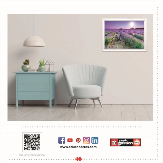 Profitez d’un moment de détente avec une superbe image d’un champ de lavande et d’un vélo vintage. Ce puzzle de qualité de la marque EDUCA propose 1000 pièces et, une fois assemblé, il mesure env. 68 × 48 cm. L’emballage comprend gratuitement la colle FIX PUZZLE pour coller et exposer facilement l’œuvre terminée.