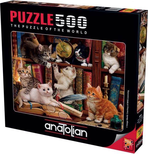Puzzle Chats dans la bibliothèque pour les amoureux des chats et des puzzles avec le parfum de la bibliothèque. Parfait pour la détente de toute la famille.