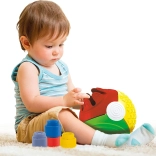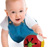 Le jouet est fabriqué à partir de matériaux sûrs et faciles à entretenir, la boule pouvant être lavée avec du savon doux et de l'eau tiède. Il est idéal pour les enfants dès l'âge de 6 mois et soutient leur développement précoce.