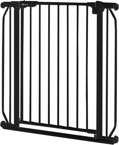 Le seuil bas de 1,5 cm avec espace pour plinthe réduit au minimum le risque de trébuchement. La construction en métal de haute qualité sans bords tranchants garantit durabilité et longévité. La barrière s’ouvre dans les deux sens et couvre une largeur de 75 à 85 cm (jusqu’à 105 cm avec rallonges).