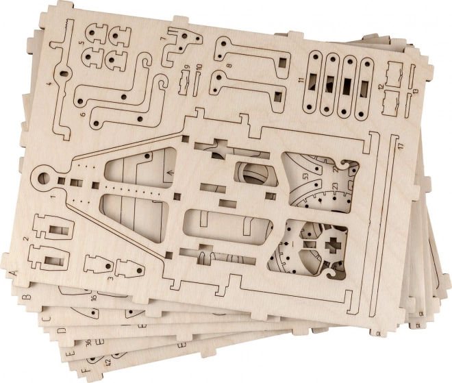 La remorque militaire WOODEN CITY est une maquette mécanique en bois au style soigné qui ravira tous les passionnés de technique et de modélisme. Grâce à la découpe laser précise dans du contreplaqué de bouleau, les pièces s’emboîtent parfaitement – le montage se fait sans colle et reste propre, rapide et amusant. Le résultat est un modèle décoratif impressionnant avec des éléments fonctionnels, qui complétera parfaitement, par exemple, une voiture en bois de type Jeep 4x4.