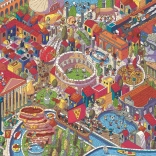 Eye-Spy Villes Imaginaires Rome Italie vous transporte dans un monde romain déjanté et abstrait, où tout est possible. Essayez, à travers les fenêtres, de repérer des détails ingénieux et des lieux surprenants. Issues des collections Imaginary Cities et Sneaky Peakers, les illustrations sont très détaillées et pleines d’humour.