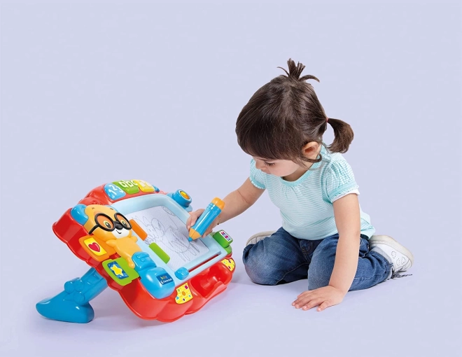 Tableau coloré pour apprendre à dessiner, mais aussi centre d’activités avec chansons et comptines pour découvrir les chiffres, les lettres et les formes.