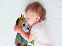 Une lanière pratique avec anneau de dentition est fixée à sa patte, idéale pour les petites mains et utile lors des poussées dentaires.