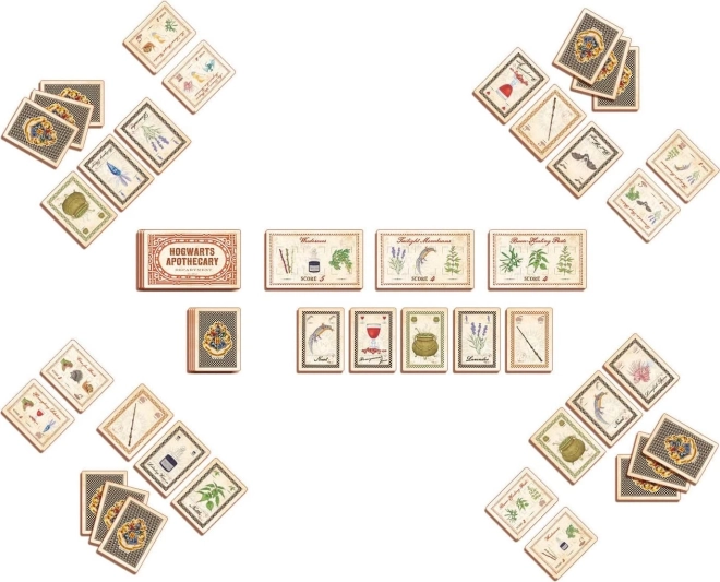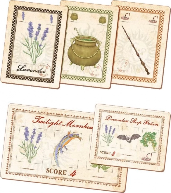 88 cartes (ingrédients, actions spéciales, chaudrons), 8 cartes de potions communes, 8 cartes de potions personnelles