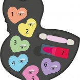 - 6 fards à paupières, 1 rouge à lèvres, 1 applicateur double embout, mode d’emploi