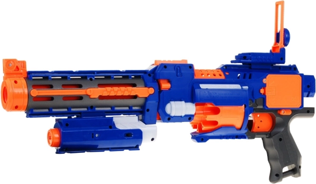 Un long canon avec rouleaux de stabilisation aide à améliorer la trajectoire des fléchettes, tandis que la trappe de service coulissante facilite le débourrage. On retrouve un interrupteur ON/OFF pour bloquer la détente en toute sécurité, un chargement frontal et un pratique viseur laser pour une meilleure visée. Le pack contient 20 fléchettes en mousse pour jouer immédiatement.