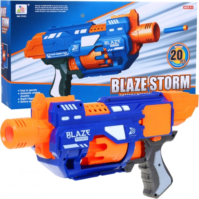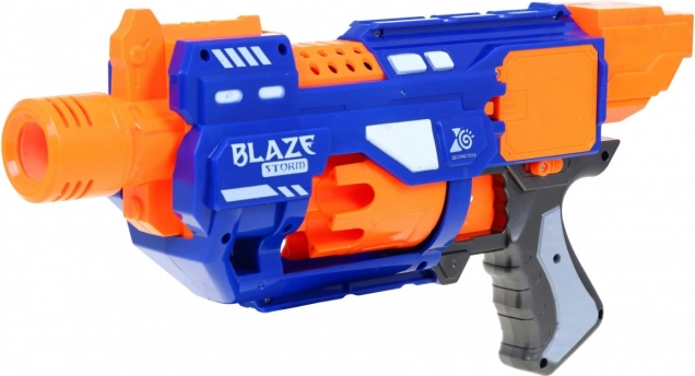 Un blaster pour enfants BLAZE STORM amusant et sûr pour 6+ avec barillet rotatif automatique et commande confortable. Contient 20 fléchettes en mousse, offre une portée jusqu’à 10 m et un mode de tir semi-automatique pour un jeu dynamique à la maison comme en extérieur. Alimentation par 3× piles AA (non incluses).