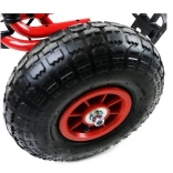 Grâce aux larges pneus gonflables à profil marqué, le kart maîtrise pavés, jardin et allées de parc. Le frein à main agissant sur les deux roues arrière apporte de l’assurance en descente, tandis que la chaîne carénée et les pédales antidérapantes renforcent la sécurité. Une peinture de qualité protège la surface contre les rayures et les intempéries.