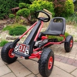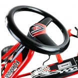 Kart à pédales ludique et robuste pour enfants dès 4 ans, avec pneus gonflables, frein à main agissant sur les deux roues arrière et siège réglable. Sa structure métallique solide, la rotation silencieuse grâce aux roulements de roues et le carter de chaîne fermé garantissent une conduite confortable et sûre en extérieur.