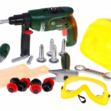 | | Le kit de bricolage avec perceuse, lunettes, casque et outils convient aux enfants à partir de 3 ans. Le jouet influence positivement le développement de la pensée logique, stimule la créativité et favorise la coordination œil-main. Le tournevis est alimenté par 2 piles AA 1,5 V (non incluses). | Contenu du set |