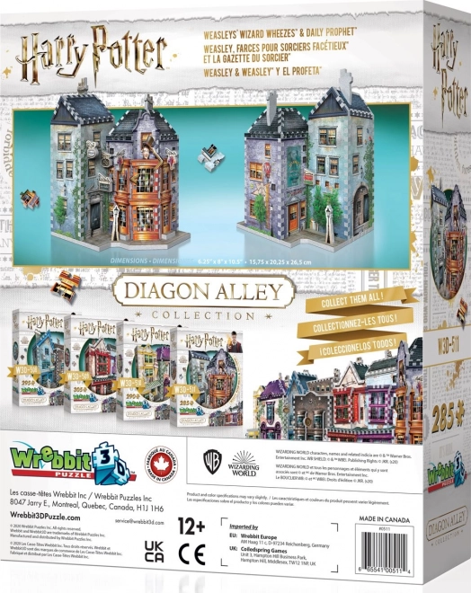 Plongez dans le monde de la magie et assemblez un modèle réaliste de deux bâtiments légendaires – Farces pour sorciers Weasley et la Gazette du Sorcier. Le puzzle 3D WREBBIT utilise un matériau spécial, extra robuste, grâce auquel les pièces conservent leur forme et leur assemblage sans besoin de colle.