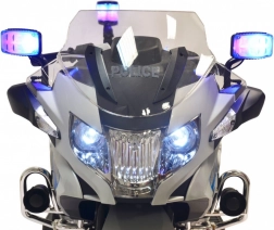La moto s’inspire des véritables motos de police et inclut des détails comme des phares LED et des sirènes de police authentiques.