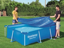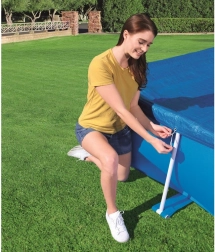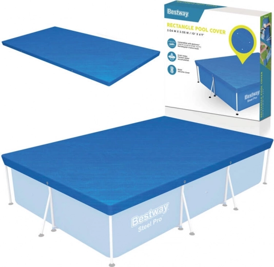 La couverture est conçue pour protéger votre piscine rectangulaire avec un cadre mesurant 300 x 201 cm. Les ouvertures de drainage spéciales sur la couverture empêchent l'accumulation d'eau. Grâce aux sangles intégrées, attacher la couverture à la structure de la piscine est simple et sécurisé.