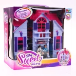 La maison combine des couleurs vives comme le rose et le violet qui attirent l'attention des enfants et stimulent leur imagination.