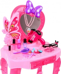 Un tiroir pratique dissimule toutes les petites choses, tandis que le tabouret fourni assure une assise confortable. Le riche ensemble de bijoux et d’accessoires cosmétiques permet aux enfants d’explorer le style, de développer la motricité fine et les compétences sociales lors du jeu partagé.