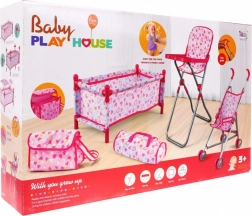Ensemble d'accessoires pour poupées pour enfants 3+ Soins pour bébés avec poussette, chaise haute, berceau et 2 sacs