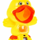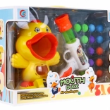 Après avoir touché la « langue » du canard, le jeu enregistre un point sur l’écran LCD clair et l’accompagne d’une réponse sonore. Le canard est alimenté par 3 × AAA 1,5 V (non incluses), le pistolet ne nécessite aucune pile.