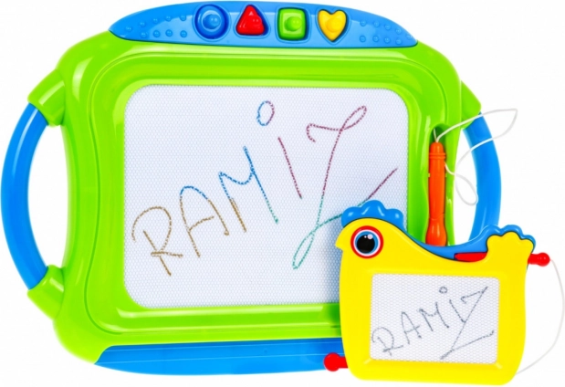 Découvrez un amusement créatif sans désordre avec un lot de deux ardoises magnétiques de dessin : une grande ardoise colorée avec tampons et une plus petite, compacte, pour les déplacements. Grâce aux stylos-guides attachés et aux tampons, les enfants développent leur motricité fine, leur imagination et leur créativité. Les dessins s’effacent facilement d’un simple glissement, pour un plaisir renouvelé à la maison comme en voyage.