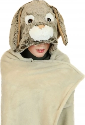 Offrez aux enfants à la fois chaleur et plaisir. La couverture Cozy Noxxiez en polaire super douce est parfaite comme plaid et comme accessoire de jeu amusant. La capuche motif lapin et les deux poches d’angle en forme de pattes gardent les mains au chaud et stimulent l’imagination.