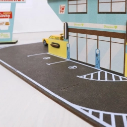 Avec ce kit créatif, construisez un supermarché avec restaurant burger, parking, rampes d’entrée et de sortie, ainsi que des routes attenantes. Les pièces s’assemblent aisément, tiennent fermement pendant le jeu et offrent aux enfants des heures de conduite imaginative avec des petites voitures. Les composants en carton et en bois issus de matériaux responsables garantissent résistance et respect de l’environnement.