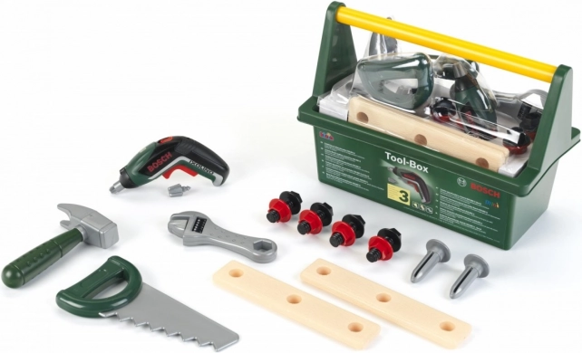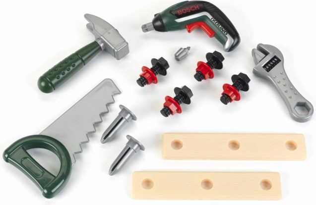 Valisette pour enfants avec outils et visseuse BOSCH Ixolino II. Ensemble léger et sûr pour petits bricoleurs, développe motricité et imagination. Excellent cadeau.
